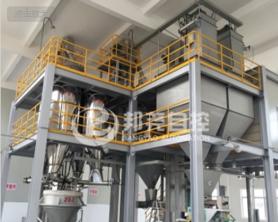 該系統(tǒng)可以控制數十種物料,數個計量稱重斗,按照事先設定的配方進行稱量,配比,包裝。配料精度高(動態(tài)精度0.1%),生產速度快,優(yōu)于生產線上的其他單機設備。