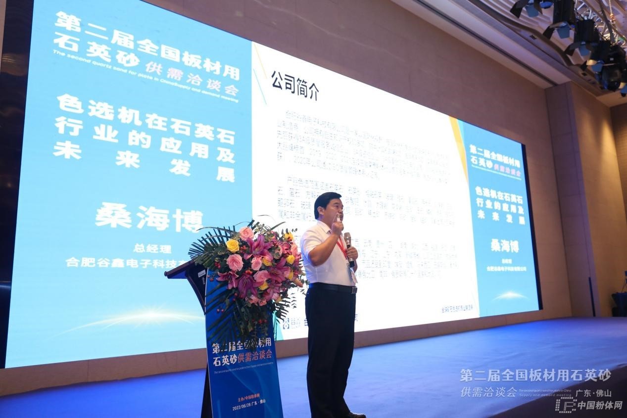 合肥谷鑫電子科技有限公司總經(jīng)理桑海博作《色選機在石英石行業(yè)的應用及未來發(fā)展》報告