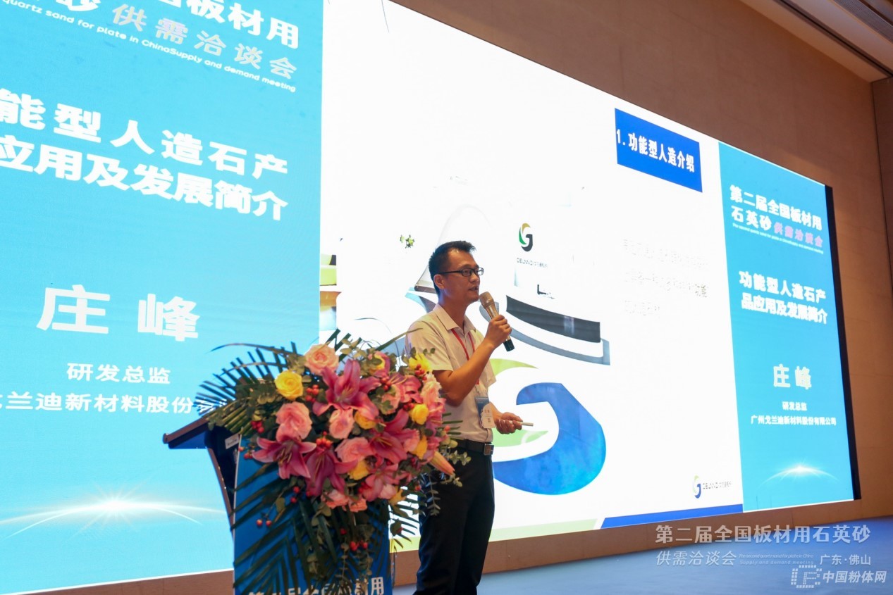 廣州戈蘭迪新材料股份有限公司研發(fā)總監(jiān)莊峰作《功能型人造石產(chǎn)品應用及發(fā)展簡介》報告