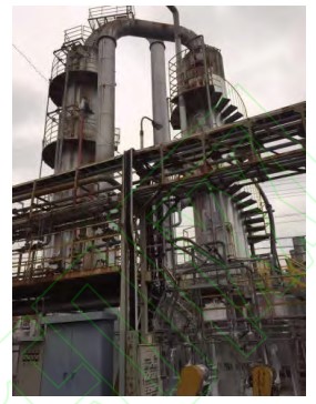 連續(xù)噴霧碳化:其碳化塔包含A塔(高15米,直徑2.1米)和B塔(高18米,直徑2.6米),二個(gè)塔循環(huán)碳化。底部通入CO2,漿液用泵從塔底通過管道從頂部噴入,下落入塔底,不斷循環(huán),直到中和至pH≤7停止。噴霧碳化主要的技術(shù)是氣量與噴霧漿液的大小的配合,適合生產(chǎn)規(guī)整、分散性好的立方體納米碳酸鈣。