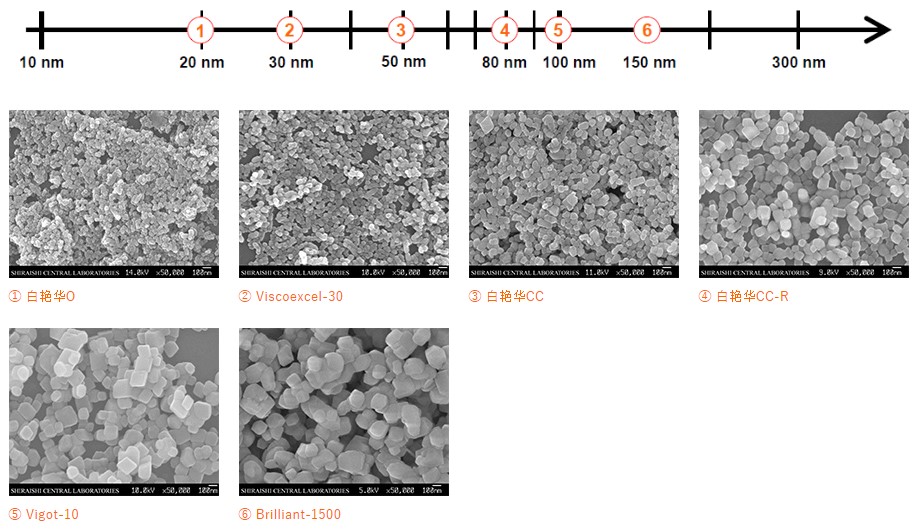 除了確保均勻的粒子形狀外,穩(wěn)定的結(jié)晶、均勻的粒子大小也是讓填料達(dá)到所需特性的重要因素。以膠體粒子為例,白石公司在20-300nm的范圍內(nèi),針對性地生產(chǎn)出特定粒徑的碳酸鈣。通過生產(chǎn)均勻的粒子,能夠確保向基材賦予物理性質(zhì)的重現(xiàn)性。