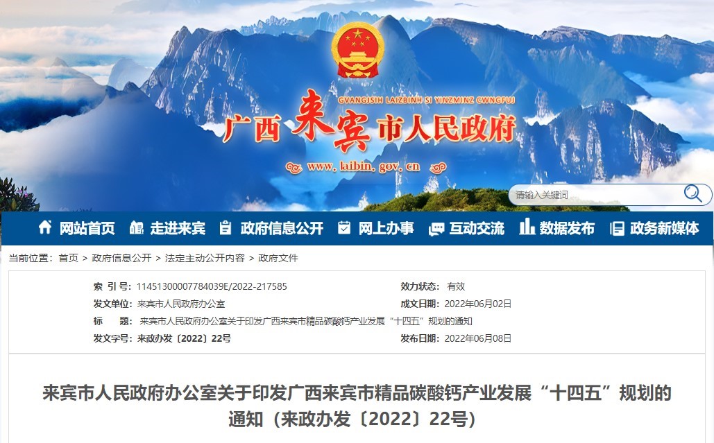《廣西省碳酸鈣產(chǎn)業(yè)高質(zhì)量發(fā)展“十四五”規(guī)劃》印發(fā)