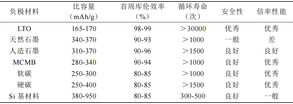 幾種常見鋰電池負極材料的比較(圖源:魏冰歆等,《鈦酸鋰負極在鋰離子電池中的應用》)