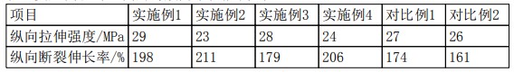 對比例2中,納米碳酸鈣未改性,納米顆粒表面能高,處于熱力學(xué)非穩(wěn)定狀態(tài),在制備過程中容易發(fā)生團(tuán)聚情況,導(dǎo)致薄膜的力學(xué)性能降低;而實施例中,將納米碳酸鈣改性,提高了納米顆粒與高分子材料之間的相容性,從而提高薄膜的力學(xué)性能。