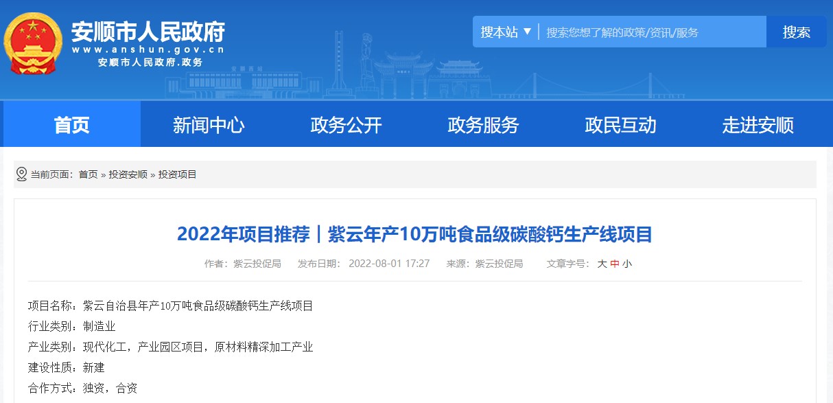 6安順食品級碳酸鈣項目招商