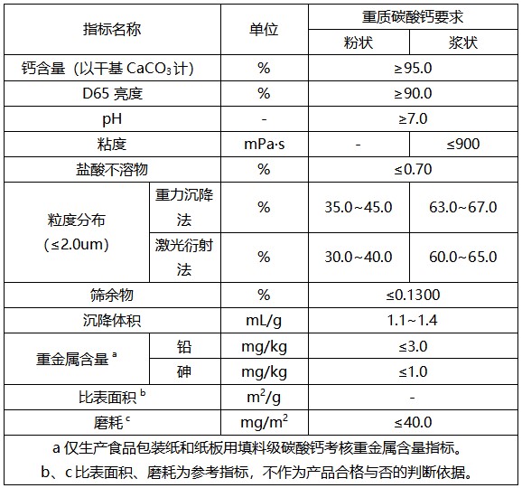 填料級(jí)碳酸鈣的技術(shù)指標(biāo)要求(QB/T2811-2019造紙用碳酸鈣)