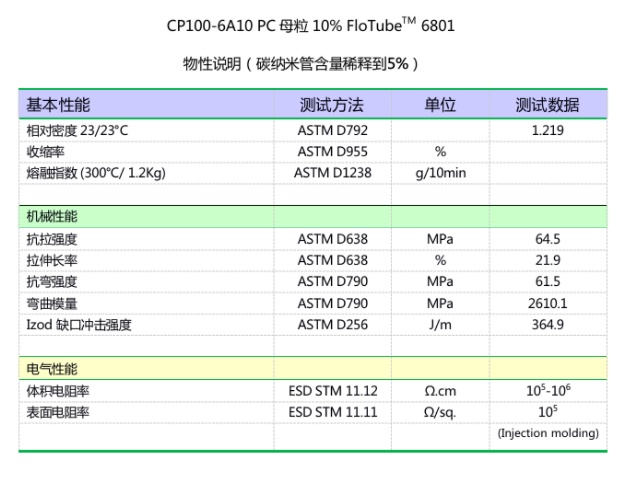 3. 碳納米管導(dǎo)電母粒-CP100-6A10 PC母粒10% FloTube™6801