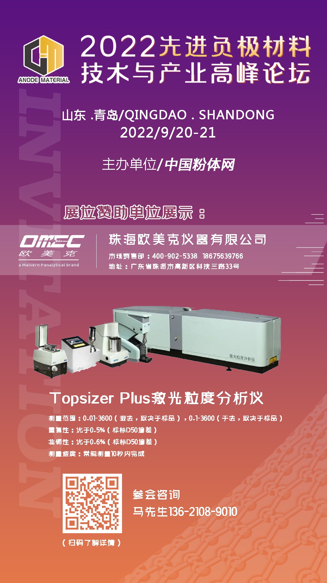 第四屆中國(長沙)鋰電正負(fù)材料技術(shù)與產(chǎn)業(yè)化研討會于8月12日在湖南長沙圓滿落幕,本次大會邀請了國內(nèi)外正負(fù)極材料產(chǎn)業(yè)鏈相關(guān)專家學(xué)者、工程技術(shù)人員等1800余人參會。作為國內(nèi)著名的顆粒測量儀器制造商,珠海歐美克儀器攜新能源行業(yè)大受歡迎的Topsizer激光粒度分析亮相本次大會,為行業(yè)的創(chuàng)新發(fā)展帶來更專業(yè)優(yōu)化的粒度檢測方案。