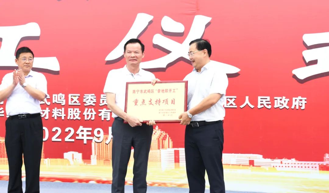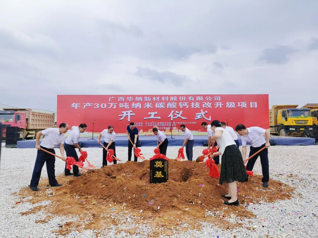 中國粉體網(wǎng)訊 9月1日上午,由中共南寧市武鳴區(qū)委員會、南寧市武鳴區(qū)人民政府主辦的“廣西華納新材料股份有限公司年產(chǎn)30萬噸納米碳酸鈣技改升級項目開工儀式”在甘圩鎮(zhèn)武鳴新材料產(chǎn)業(yè)園隆重舉行。
