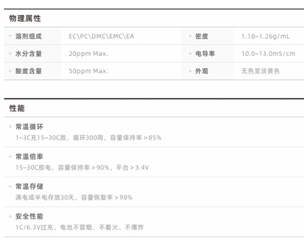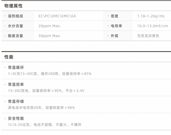 適用于3.85~4.45V鈷酸鋰、三元、磷酸鐵鋰正極搭配石墨/硅負(fù)極的軟包、方型、圓柱電池,具備大功率充放電兼顧高溫性能