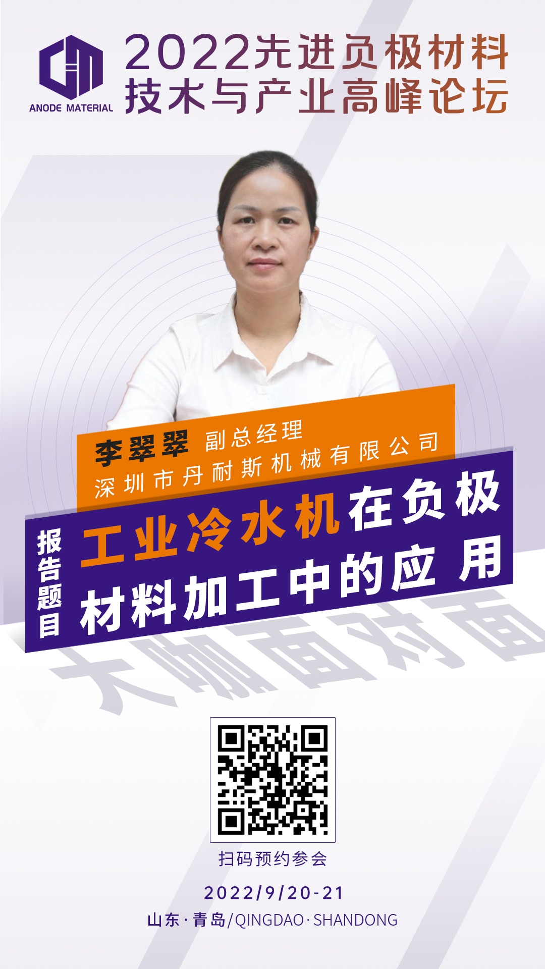 針對各類負(fù)極材料的產(chǎn)業(yè)化技術(shù)與國內(nèi)外市場狀況,中國粉體網(wǎng)將于10月18-19日在青島舉辦2022先進(jìn)負(fù)極材料技術(shù)與產(chǎn)業(yè)高峰論壇,旨在為負(fù)極材料產(chǎn)業(yè)鏈上中下游企業(yè)搭建深度交流的平臺,開展產(chǎn)、學(xué)、研合作,助推負(fù)極材料行業(yè)持續(xù)健康發(fā)展。屆時(shí),深圳市丹耐斯機(jī)械有限公司副總經(jīng)理李翠翠女士將作題為《工業(yè)冷水機(jī)在負(fù)極材料加工中的應(yīng)用》的報(bào)告。報(bào)告將對丹耐斯工業(yè)冷水機(jī)在鋰電負(fù)極材料生產(chǎn)加工中的應(yīng)用做詳細(xì)介紹。丹耐斯涵蓋的溫控設(shè)備產(chǎn)品主要包括螺桿冷水機(jī)組、防爆式變頻冷水機(jī)組、風(fēng)冷渦旋式冷水機(jī)組、水冷渦旋式冷水機(jī)組、降膜式省電節(jié)能冷水機(jī)組、模溫機(jī)、低溫冷水機(jī)組、冷卻塔等,廣泛應(yīng)用于鋰電池、化工、橡塑、電鍍、食品、制藥等領(lǐng)域。