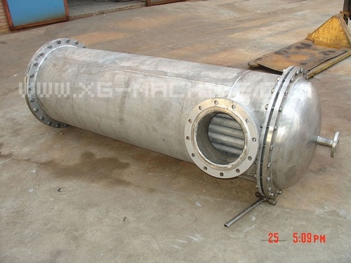 我廠生產(chǎn)的不銹鋼冷凝器,分為列管冷凝器和螺旋板式換熱器,與氣體或物料接觸部位均采用1Cr18Ni9Ti不銹鋼無縫管及不銹鋼耐酸板制作。列管式冷凝器規(guī)格有:0.5、1、2、5、10、15、25、35、50、100、200、300㎡等不同冷凝面積的規(guī)格品種?筛鶕(jù)客戶要求制作各種規(guī)格和其它材料。