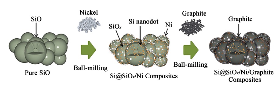 Si@SiOx/Ni/G復(fù)合材料的合成路線示意圖(來(lái)源:方銳等,《鋰離子電池用硅基負(fù)極材料研究進(jìn)展》)