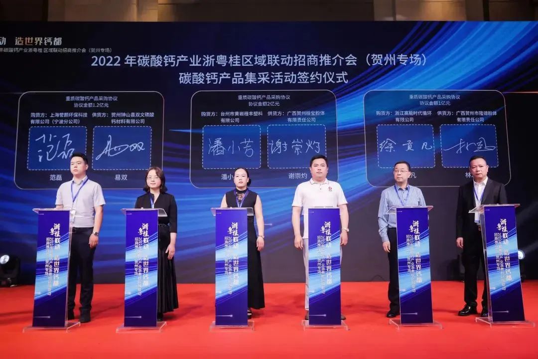 推介會上,賀州市副市長匡永紅代表市人民政府與企業(yè)代表進行簽約。本次簽約項目共13個,簽約投資總額達102.96億元,F(xiàn)場舉行了碳酸鈣產品集采簽約活動,集采協(xié)議金額達19.2億元,其中協(xié)會執(zhí)行會長單位廣西賀州市科隆粉體有限公司重質碳酸鈣產品采購協(xié)議金額5億元,副會長單位賀州鐘山縣雙文碳酸鈣新材料有限公司重質碳酸鈣產品采購協(xié)議金額1.2億元。