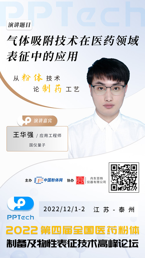 氣體吸附技術(shù)是材料表面物性表征的重要方法之一,基于吸附分析能夠?qū)υ纤幒退幱幂o料的比表面積、孔容及孔徑分布、密度等進(jìn)行精準(zhǔn)的分析,在藥物的研發(fā)及生產(chǎn)過(guò)程中,這些物性參量對(duì)藥物混合均勻度、壓縮成型過(guò)程,以及最終藥物制劑的生物利用度和療效等均具有重要的影響。為滿足廣大制藥企業(yè)及新老客戶對(duì)行業(yè)難題的破解需求,中國(guó)粉體網(wǎng)將于2022年12月1-2日在江蘇泰州碧桂園鳳凰酒店舉辦“第四屆全國(guó)醫(yī)藥粉體制備及物性表征技術(shù)高峰論壇”,屆時(shí)邀請(qǐng)來(lái)自國(guó)儀量子(合肥)技術(shù)有限公司的王華強(qiáng)老師作《氣體吸附技術(shù)在醫(yī)藥領(lǐng)域表征中的應(yīng)用》報(bào)告,本報(bào)告結(jié)合不同藥物粉體材料的實(shí)際表征案例,清楚地展現(xiàn)此技術(shù)對(duì)不同藥物表面物性表征的方法以及適用性,進(jìn)而對(duì)藥品的有效期、溶解速率與藥效等做一些基礎(chǔ)性的分析,助力醫(yī)藥行業(yè)高質(zhì)量發(fā)展。