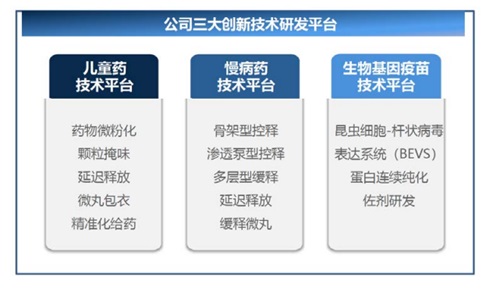 公司建有國家企業(yè)技術中心、國家級企業(yè)博士后科研工作站、廣東省兒科藥工程實驗室、廣東省企業(yè)技術中心、廣東省生化制劑工程技術研究中心等綜合性基礎研究平臺,具備從藥物分子設計、篩選、臨床轉(zhuǎn)化到產(chǎn)品產(chǎn)業(yè)化全生命周期的研發(fā)運營能力,構建有兒童藥、慢病藥和生物基因疫苗三大研發(fā)技術平臺: