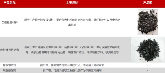 信德新材主要產(chǎn)品包括鋰電負極包覆材料、橡膠增塑劑、碳纖維可紡瀝青、裂解萘餾分等。