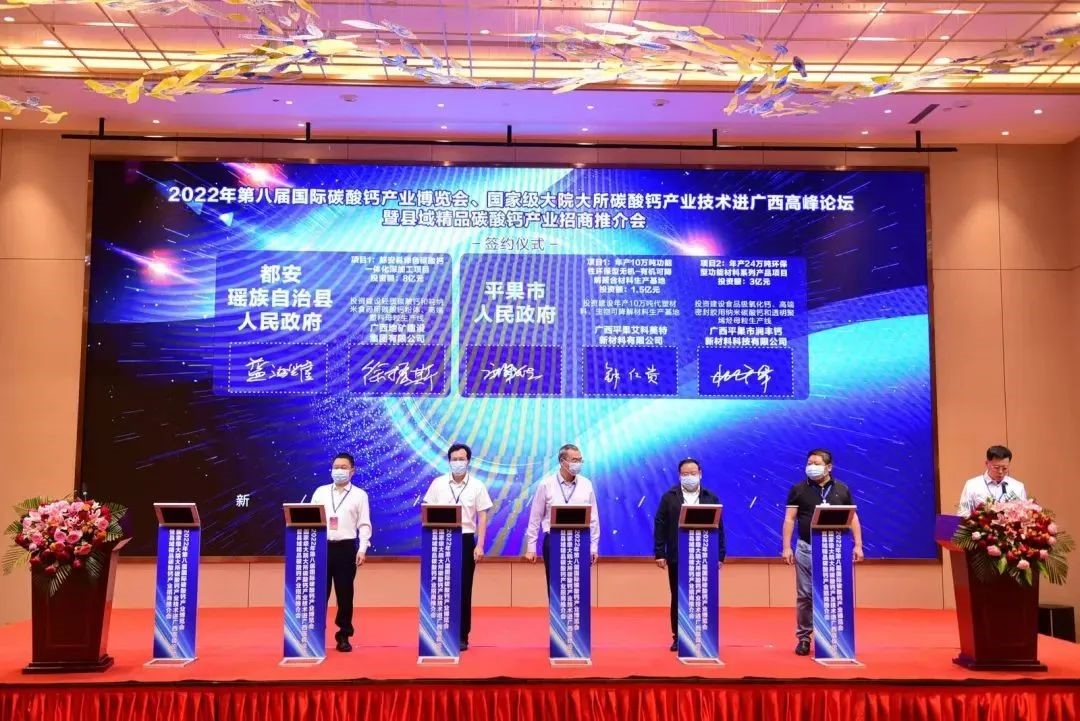 都安瑤族自治縣人民政府黨委副書記、藍淞耀副縣長與廣西地礦建設集團有限公司徐振斯總經(jīng)理,簽訂投資8億元建設“都安縣綠色碳酸鈣一體化深加工項目”協(xié)議。