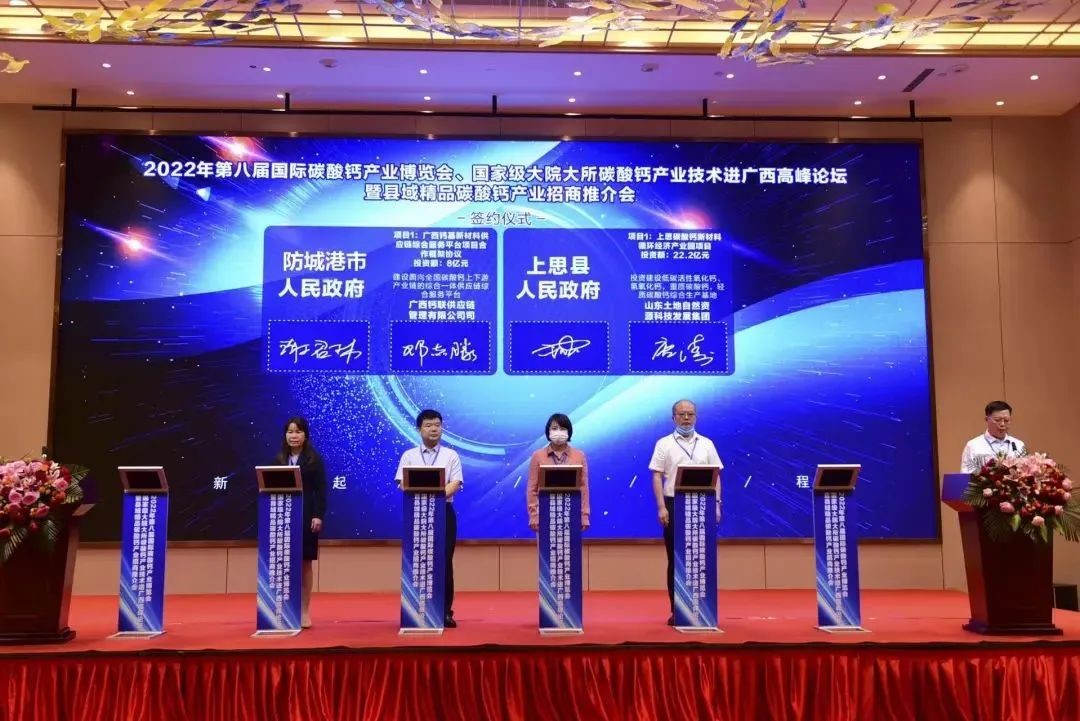 上思縣人民政府毛玉虹副縣長與山東土地自然資源科技發(fā)展集團有限公司唐濤副總經(jīng)理,簽訂投資22.2億元建設“上思碳酸鈣新材料循環(huán)經(jīng)濟產(chǎn)業(yè)園項目”協(xié)議。