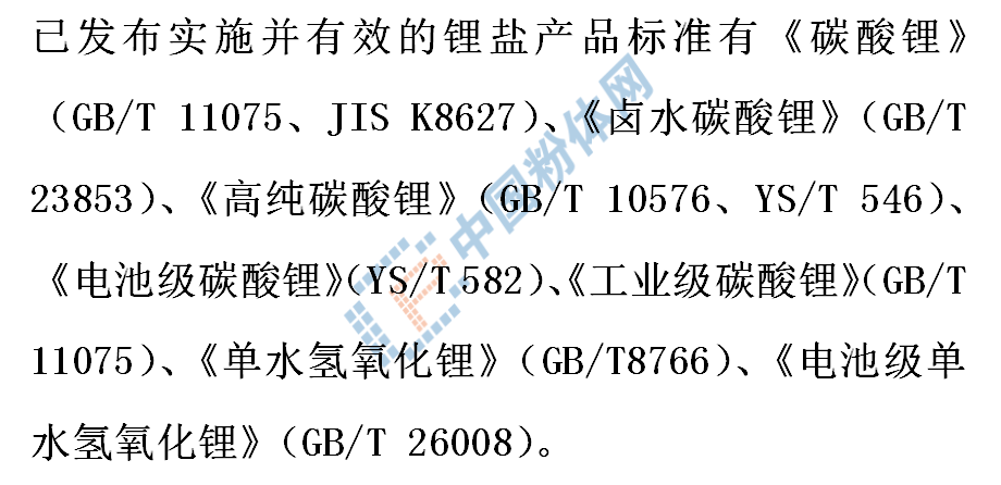 鋰鹽標(biāo)準(zhǔn)化進展及趨勢
