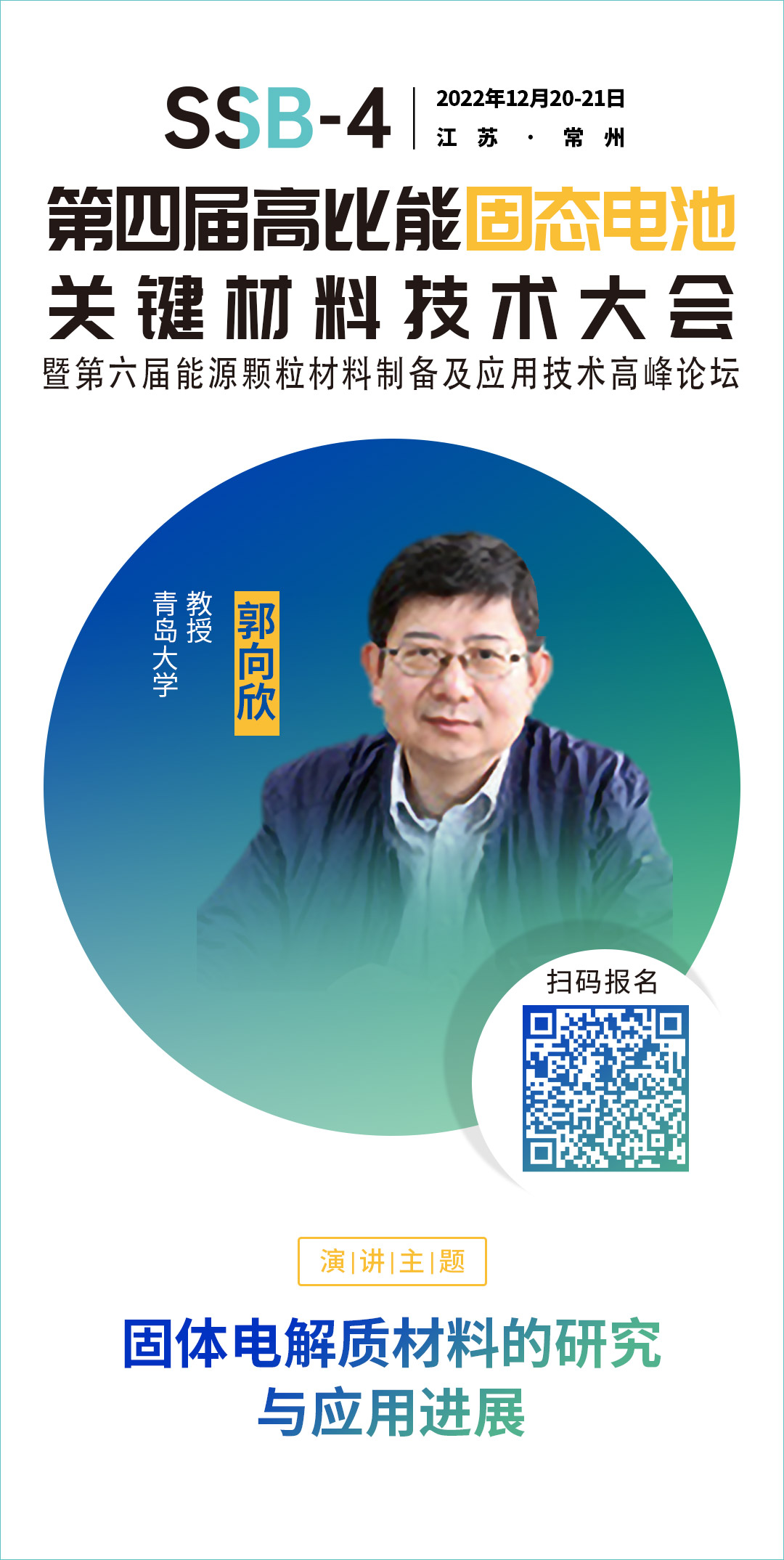 有鑒于此,中國(guó)粉體網(wǎng)將于12月20-21日在常州舉辦第四屆高比能固態(tài)電池關(guān)鍵材料技術(shù)大會(huì),為致力于固態(tài)電池技術(shù)開發(fā)的企業(yè),科研院校,以及電動(dòng)車、儲(chǔ)能、特種應(yīng)用等終端企業(yè)提供信息交流的平臺(tái),開展產(chǎn)、學(xué)、研合作,共同推動(dòng)行業(yè)發(fā)展。屆時(shí),青島大學(xué)郭向欣教授將作題為《固體電解質(zhì)材料的研究與應(yīng)用進(jìn)展》的報(bào)告。