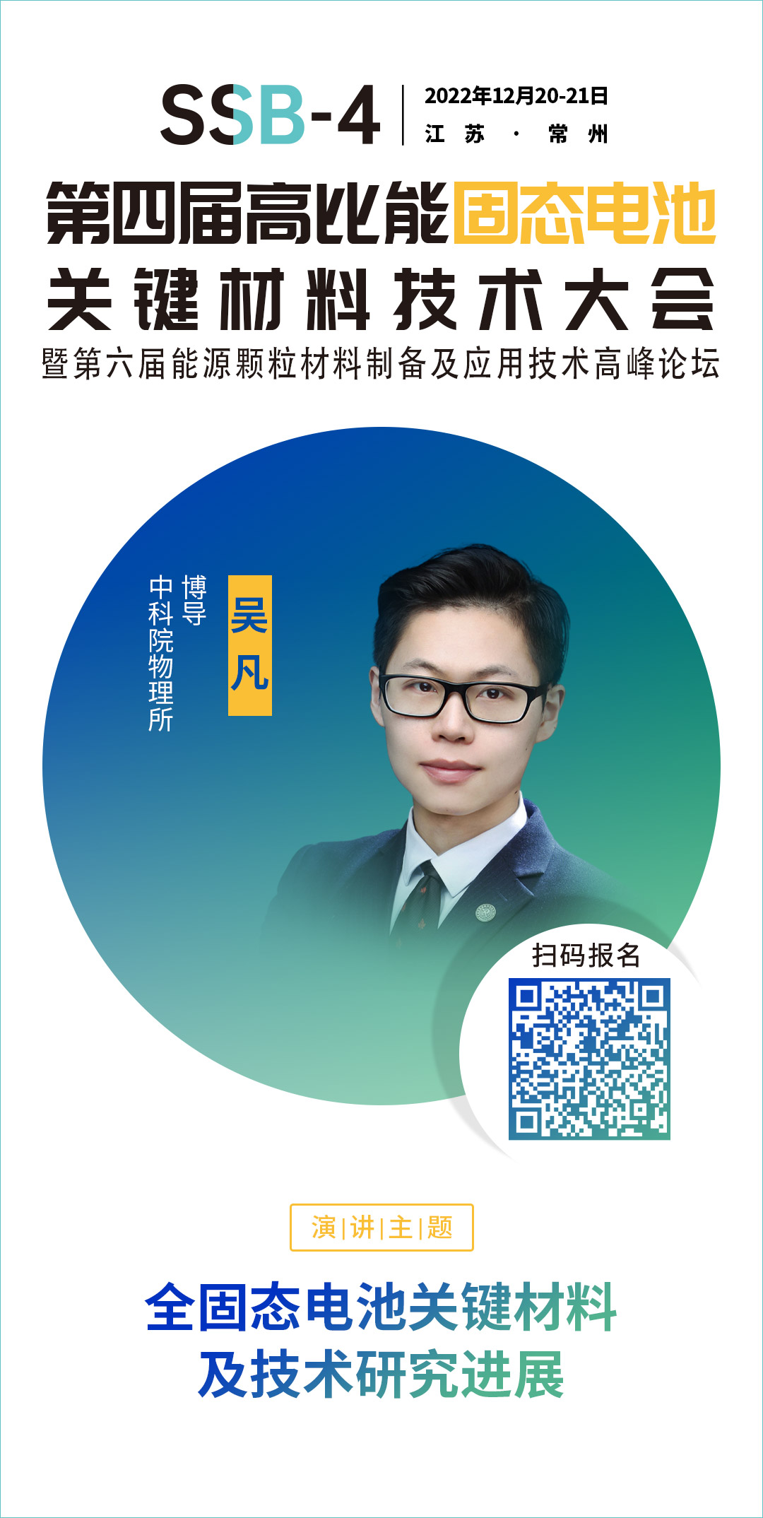 在此背景下,中國粉體網將于12月20-21日在常州舉辦第四屆高比能固態(tài)電池關鍵材料技術大會,為致力于固態(tài)電池技術開發(fā)的企業(yè),科研院校,以及電動車、儲能、特種應用等終端企業(yè)提供信息交流的平臺,開展產、學、研合作,共同推動行業(yè)發(fā)展。屆時,中科院物理所博士生導師、中國科學院大學教授吳凡將作題為《全固態(tài)電池關鍵材料及技術研究進展》的報告。報告將重點介紹硫化物全固態(tài)電池的關鍵基礎科學問題和應用化開發(fā)難題,探討其團隊在此領域的研發(fā)進展。