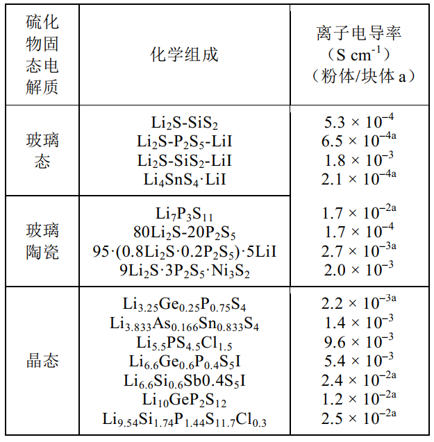 表1幾種典型硫化物固態(tài)電解質的離子電導率