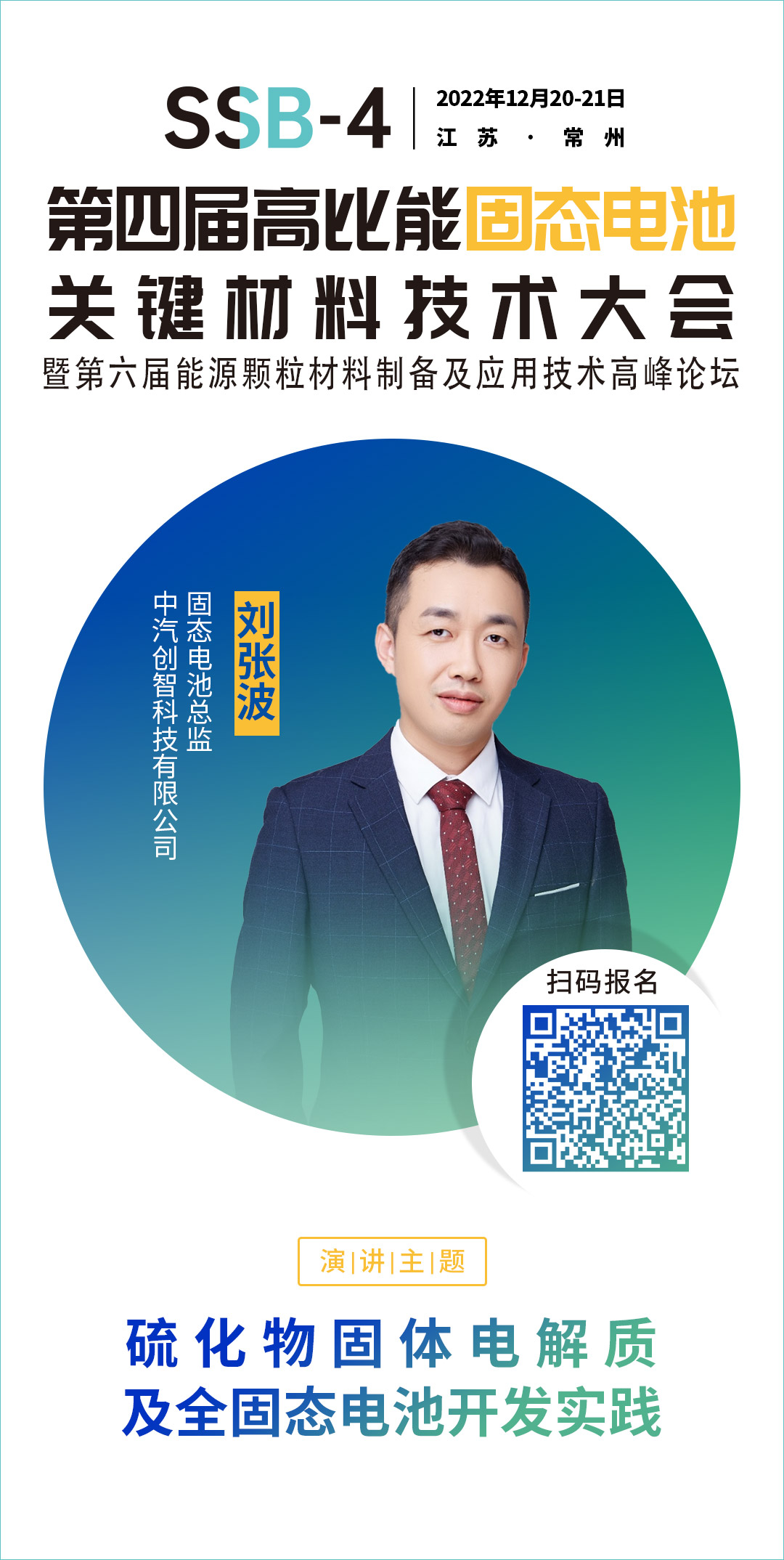 針對固態(tài)電池相關(guān)的技術(shù)、材料、市場及產(chǎn)業(yè)等方面的問題,中國粉體網(wǎng)將于12月20-21日在常州舉辦第四屆高比能固態(tài)電池關(guān)鍵材料技術(shù)大會,為致力于固態(tài)電池技術(shù)開發(fā)的企業(yè),科研院校,以及電動車、儲能、特種應(yīng)用等終端企業(yè)提供信息交流的平臺,開展產(chǎn)、學(xué)、研合作,共同推動行業(yè)發(fā)展。屆時,中汽創(chuàng)智科技有限公司固態(tài)電池總監(jiān)劉張波先生將作題為《硫化物固體電解質(zhì)及全固態(tài)電池開發(fā)實踐》的報告。報告將結(jié)合中汽創(chuàng)智的開發(fā)實踐,探討硫化物固體電解質(zhì)以及基于該體系的全固態(tài)電池開發(fā)中的各項科學(xué)和技術(shù)問題,并做相關(guān)進(jìn)展和經(jīng)驗分享。