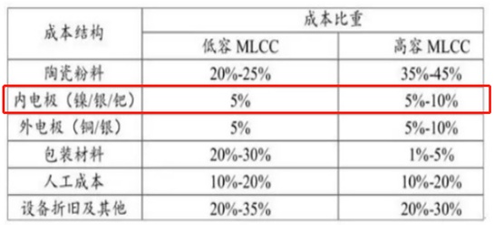 陶瓷電容器成本比重