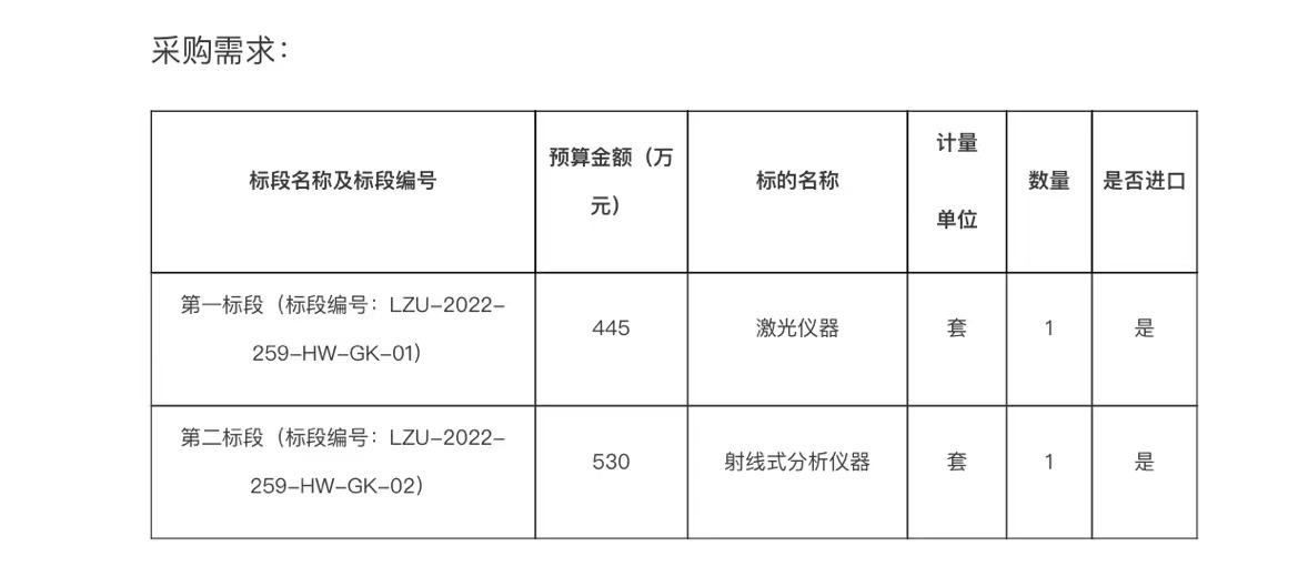 蘭州大學(xué)材料與能源學(xué)院激光超快半導(dǎo)體性能研究系統(tǒng)及原位光電子能譜儀設(shè)備購(gòu)置項(xiàng)目 招標(biāo)項(xiàng)目的潛在投標(biāo)人應(yīng)在自行從蘭州大學(xué)招標(biāo)管理辦公室主頁(yè)招標(biāo)公告 (http://zbb.zu.edu.cn)和中國(guó)政府招標(biāo)網(wǎng)(www.ccgpgov.cn)上鏈接網(wǎng)址下載。獲取招標(biāo)文件,并于2022年12月15日 09點(diǎn)00分(北京時(shí)間)前遞交投標(biāo)文件。