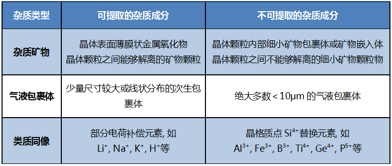 天然石英礦中的雜質(zhì)類型及其可提純加工性