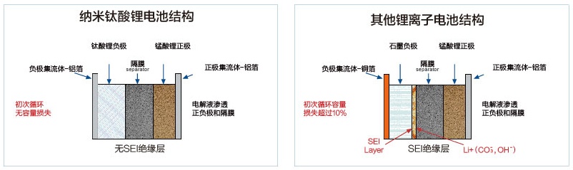 鈦酸鋰材料對鋰金屬電位更高,避免了電池在過充過程中生成枝晶,安全穩(wěn)定性更好;同時,具備三維的鋰離子傳輸通道,可高倍率充放電:在-50℃極低溫至60℃的超高溫范圍內(nèi)實現(xiàn)完全充放電。