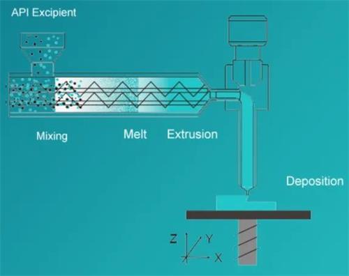 1.在熔融沉積成型 (FDM) 中,藥物和其他成分在擠出機(jī)中組合,并在單獨(dú)的制造步驟中形成細(xì)絲,然后細(xì)絲熔化并沉積在 FDM 打印機(jī)中。
