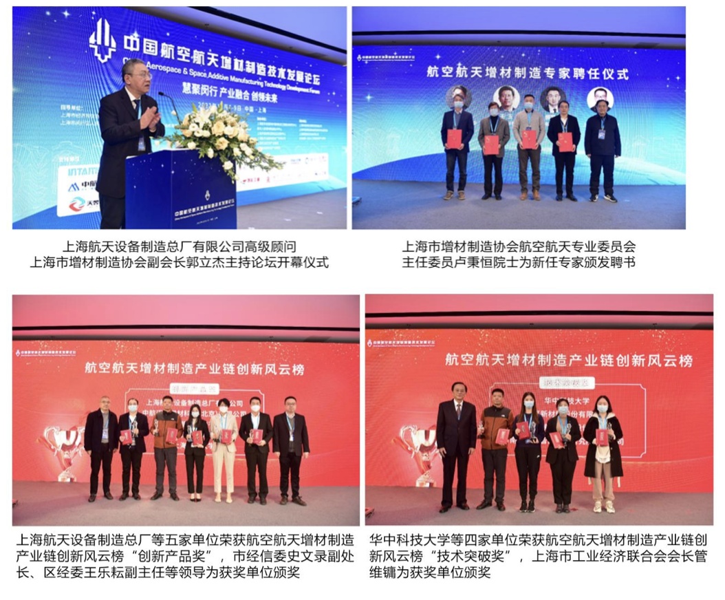 論壇開幕期間還舉行了上海市增材制造協(xié)會(huì)航空航天專業(yè)委員會(huì)專家聘任儀式和航空航天增材制造產(chǎn)業(yè)鏈創(chuàng)新風(fēng)云榜頒獎(jiǎng)儀式。