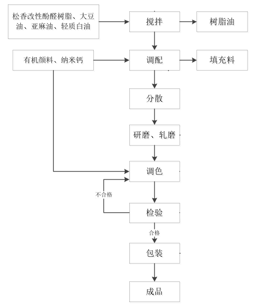 油墨生產(chǎn)的原料主要為樹脂物料(松香改性酚醛樹脂等)、有機(jī)顏料、納米碳酸鈣、大豆油、亞麻油、輕質(zhì)白油等。