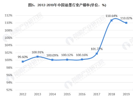 2012-2019年中國油墨行業(yè)產(chǎn)銷率