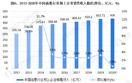 2012-2020年中國油墨行業(yè)規(guī)上企業(yè)銷售收入情況