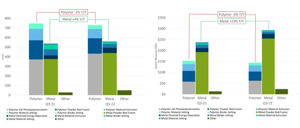 △按材料劃分(聚合物、金屬、其他)的全球工業(yè)系統(tǒng)出貨量。2021年第三季度和2022年第三季度對(duì)比