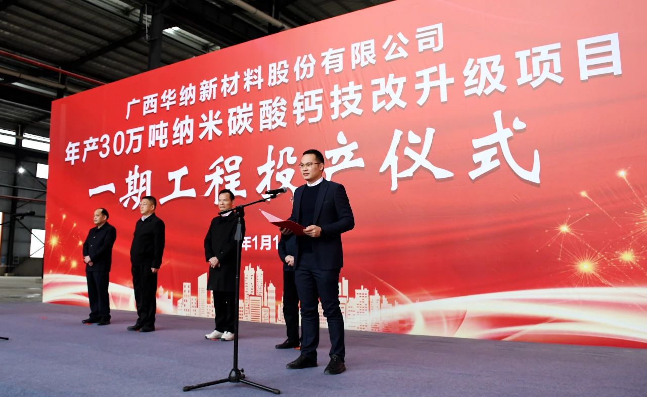 中國(guó)粉體網(wǎng)訊 1月11日下午,廣西華納新材料股份有限公司舉行年產(chǎn)30萬噸納米碳酸鈣技改升級(jí)項(xiàng)目一期工程竣工投產(chǎn)儀式。