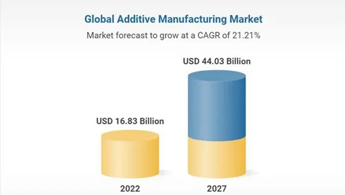 中國(guó)粉體網(wǎng)訊 Research and Markets于2023年初發(fā)布了一份關(guān)于全球3D打印市場(chǎng)的最新研究報(bào)告。該公司估計(jì),到2027年,3D打印行業(yè)的價(jià)值將從今年的168.3億美元(約1137億人民幣)增長(zhǎng)到440.3億美元(約2975億人民幣),即2021年至2027年的年增長(zhǎng)率為21%。