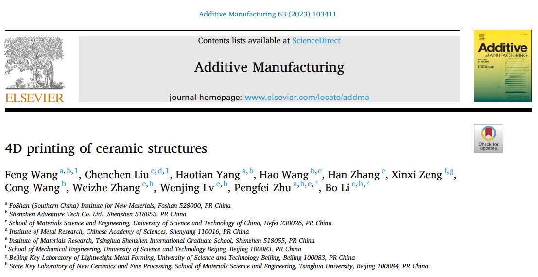 近日,以佛山(華南)新材料研究院為第一完成單位,聯(lián)合清華大學(xué)深圳研究生院、深圳奇遇科技有限公司在國際期刊《Additive Manufacturing》上發(fā)表題為“4D printing of ceramic structures”的相關(guān)論文,提出關(guān)于復(fù)雜陶瓷結(jié)構(gòu)的4D打印策略,通過精確調(diào)整陶瓷材料的固含量和打印路徑,實(shí)現(xiàn)了陶瓷結(jié)構(gòu)的可控變形。
