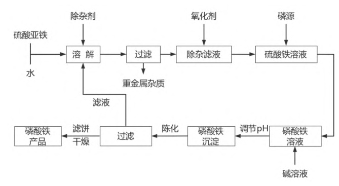 利用鈦白副產(chǎn)硫酸亞鐵制備電池級磷酸鐵產(chǎn)品,可以極大地解決鈦白副產(chǎn)硫酸亞鐵過剩產(chǎn)能,在提高硫酸亞鐵產(chǎn)品附加值的同時,可以在一定程度上緩解磷酸鐵產(chǎn)品市場緊缺的情況。