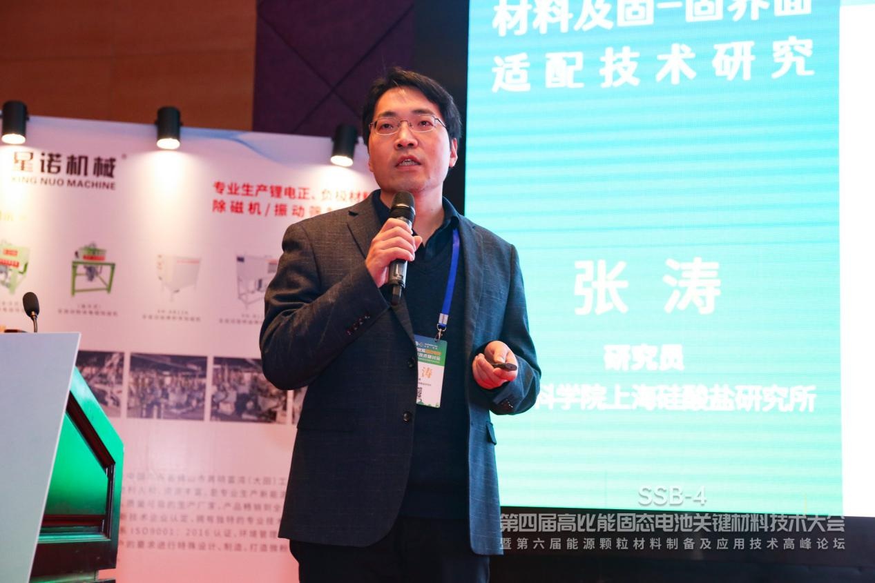 中國科學院上海硅酸鹽研究所張濤研究員作《陶瓷基鋰金屬電池材料及固-固界面適配技術研究》的報告
