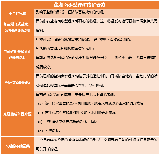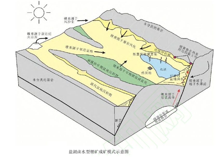 鹽湖鹵水型鋰礦的成因主要是,在封閉盆地,特別是干旱沙漠地區(qū)的封閉盆地中,鋰在鹽湖鹵水中發(fā)生富集并形成有開采價值的鋰礦床。