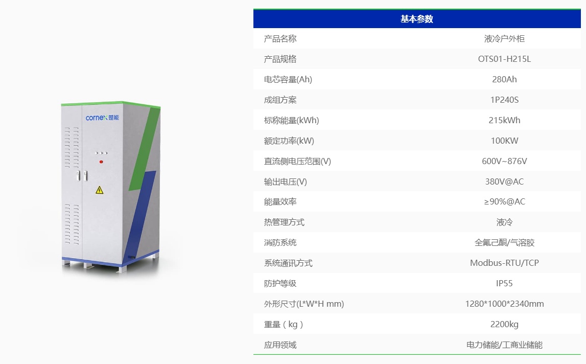 工商業(yè)儲能產(chǎn)品液冷戶外柜OTS01-H215L。