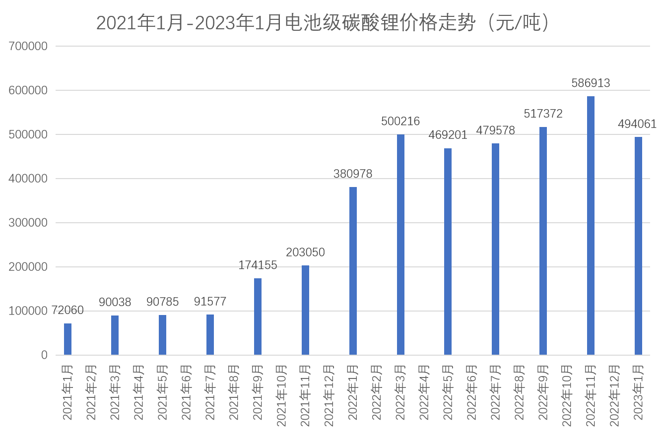 根據(jù)2023年2月23日,國家工信部電子信息司發(fā)布的《2022年全國鋰離子電池行業(yè)運(yùn)行情況》數(shù)據(jù)顯示, 2022年全國鋰離子電池產(chǎn)量達(dá)750GWh,同比增長超過130%,行業(yè)總產(chǎn)值突破1.2萬億元。與此對(duì)應(yīng)的則是去年一度高達(dá)約60萬元/噸的“上天”鋰價(jià),這一高價(jià)讓天齊鋰業(yè)、贛鋒鋰業(yè)、藏格礦業(yè)等上游企業(yè)掙得盆滿缽滿。