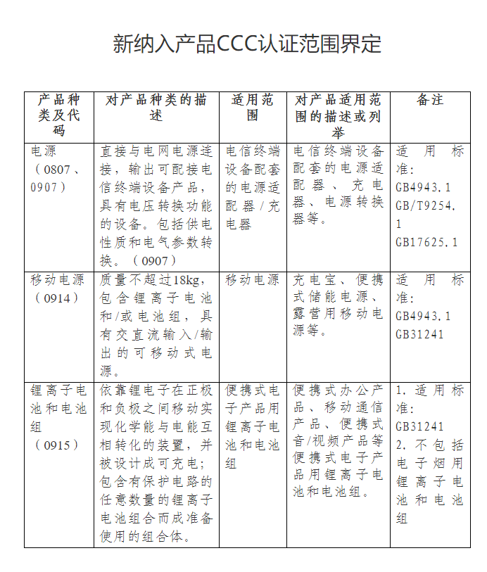 其中,對于電子電器產品使用的鋰離子電池和電池組,現(xiàn)階段先行對便攜式電子產品用鋰離子電池和電池組開展CCC認證;對于其他電子電器產品使用的鋰離子電池和電池組,待條件成熟后,適時開展CCC認證。對新納入產品的CCC認證范圍界定如下: