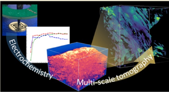 結果顯示,使用WIS-L的電池具有更高的庫侖效率,而WIS-GPE具有更高的起始放電容量和20個循環(huán)后的整體保留容量。采用掃描電子顯微鏡、X射線顯微層析和X射線納米層析的組合來描述電極的表面和內部形態(tài)。