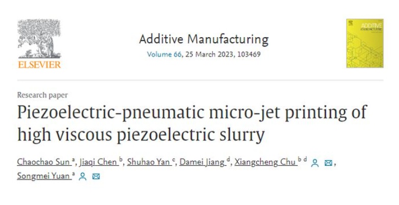 中國(guó)粉體網(wǎng)訊 近日,北京航空航天大學(xué)機(jī)械學(xué)院袁松梅教授課題組聯(lián)合清華大學(xué)、北京科技大學(xué)、佛山(華南)新材料研究院在高粘度、高固含量壓電陶瓷3D打印領(lǐng)域取得了新進(jìn)展。相關(guān)工作以“Piezoelectric-pneumatic micro-jet printing of high viscous piezoelectric slurry”為題,于近期發(fā)表在《Additive Manufacturing》期刊上。該研究獲國(guó)家自然基金(No.51775304)、廣東省基礎(chǔ)與應(yīng)用基礎(chǔ)研究基金(No.2020A1515110220)等項(xiàng)目資助。機(jī)械學(xué)院博士生孫超超為文章第一作者,機(jī)械學(xué)院袁松梅教授和清華大學(xué)材料學(xué)院褚祥誠(chéng)副研究員為共同通訊作者,北京航空航天大學(xué)為該論文的第一完成單位。
