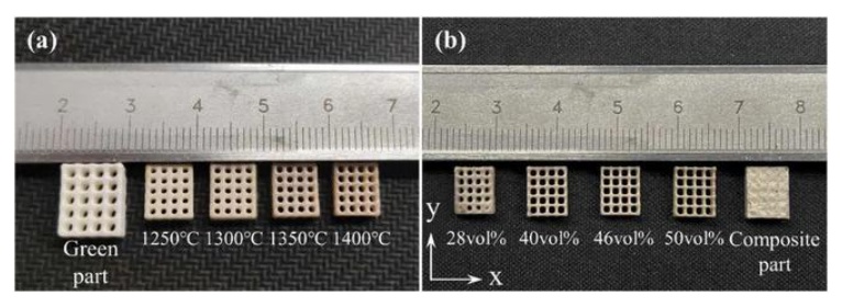 不同燒結(jié)溫度、不同固含量陶瓷漿料打印件的成型效果對(duì)比
